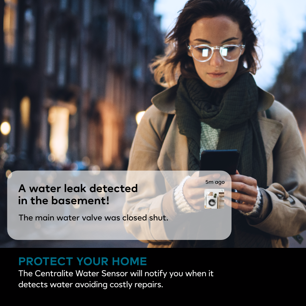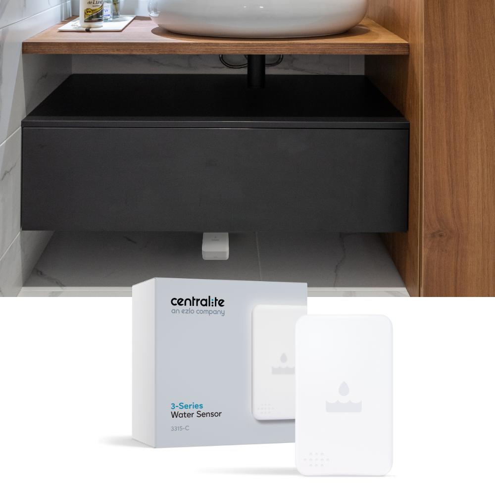 The Centralite 3-Series Water Sensor 3315-C detects leaks and floods in your home. It uses a CR-2 battery and works with Zigbee Home Automation 1.2. Fully compatible with Ezlo Plus hubs, enabling powerful automation through the MiOS platform and MeshBots. Also compatible with other third-party Zigbee hubs.
