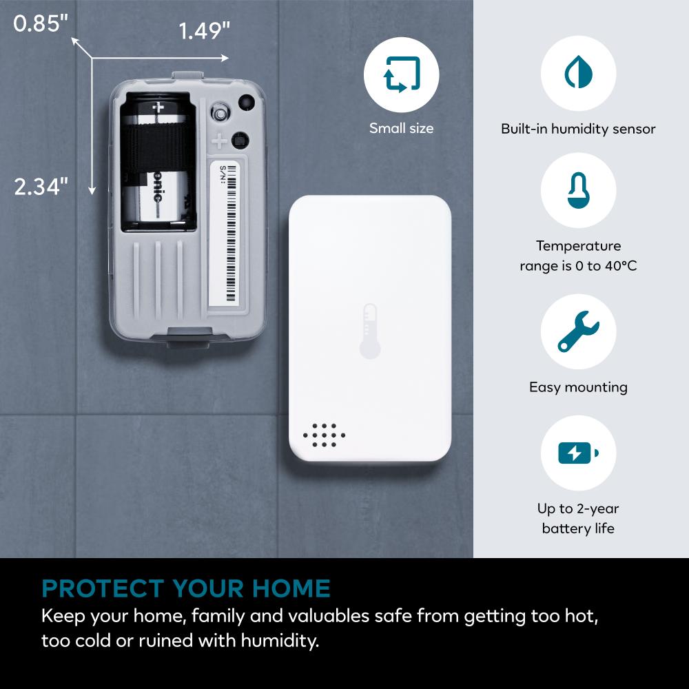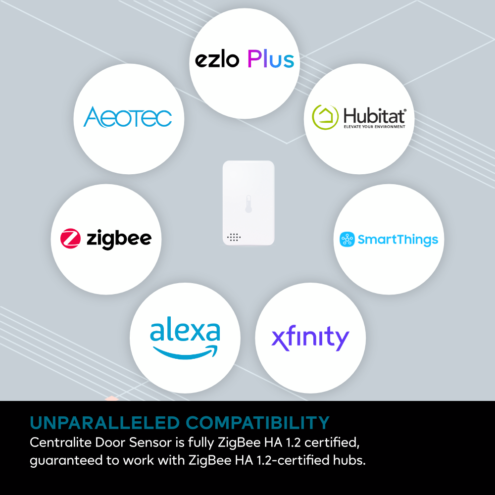 The Centralite 3-Series Temperature & Humidity Sensor 3310-C provides accurate temperature and humidity readings within its range. It uses a CR-2 battery and works with Zigbee Home Automation 1.2. Fully compatible with Ezlo Plus hubs, enabling powerful automation through the MiOS platform and MeshBots. Also compatible with other third-party Zigbee hubs.