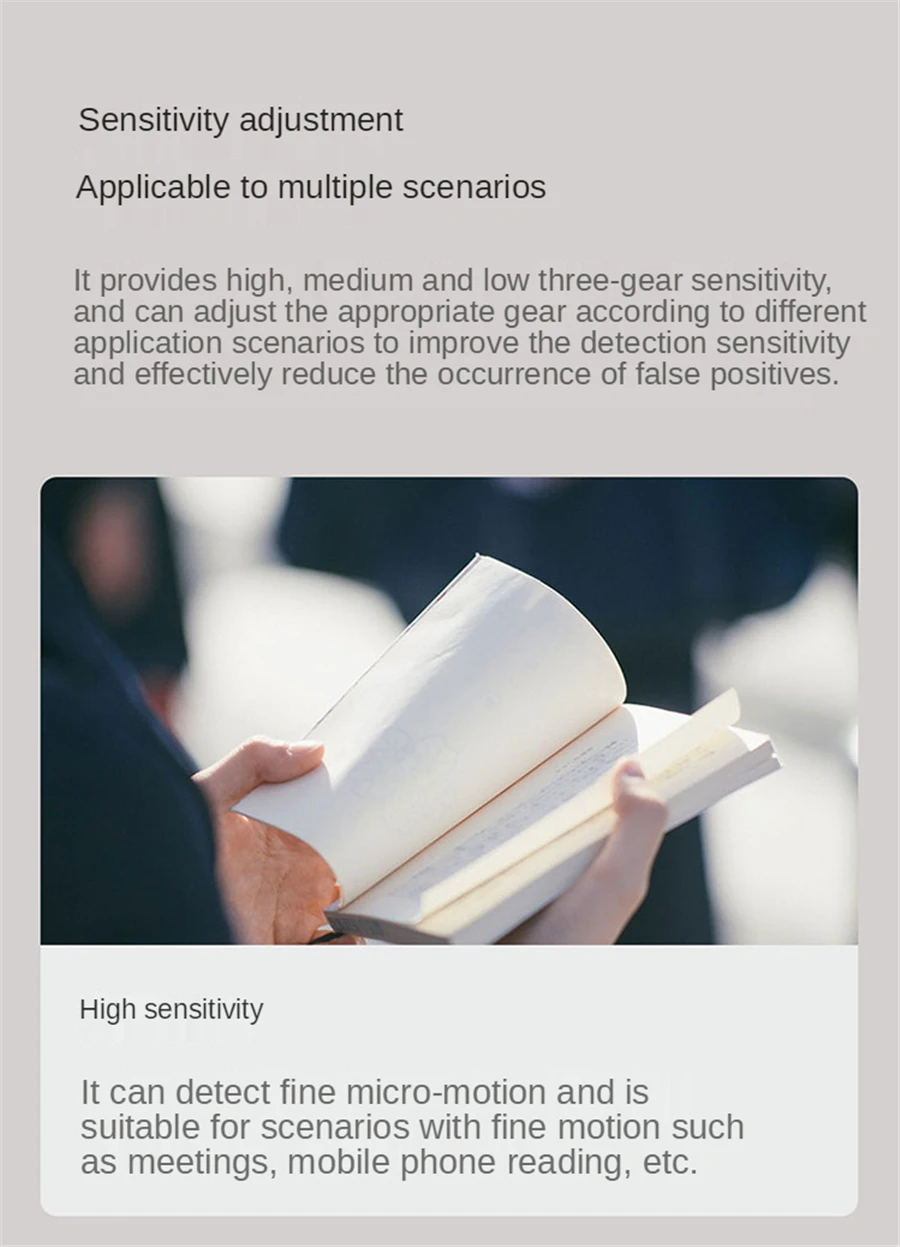 Where should the sensor be installed? 1, installed in the need to detect whether there are people in the area, such as living room, bedroom; 2, can be used to install the top or wall mount two ways; 3. Please place it on the metal surface by mistake.