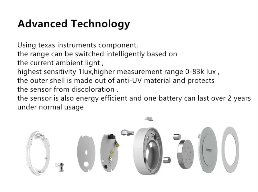 ● The sensor is also energy efficient, and one battery can last over 2 years under normal usage.