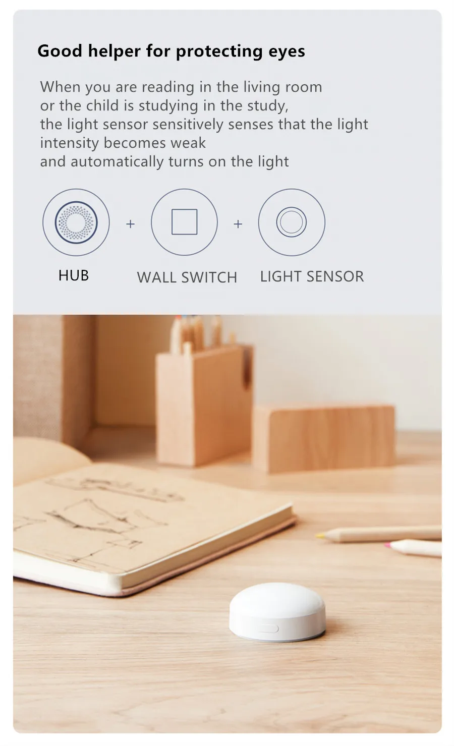 When the sun shines into the room, the light sensor will close the curtain automatically,