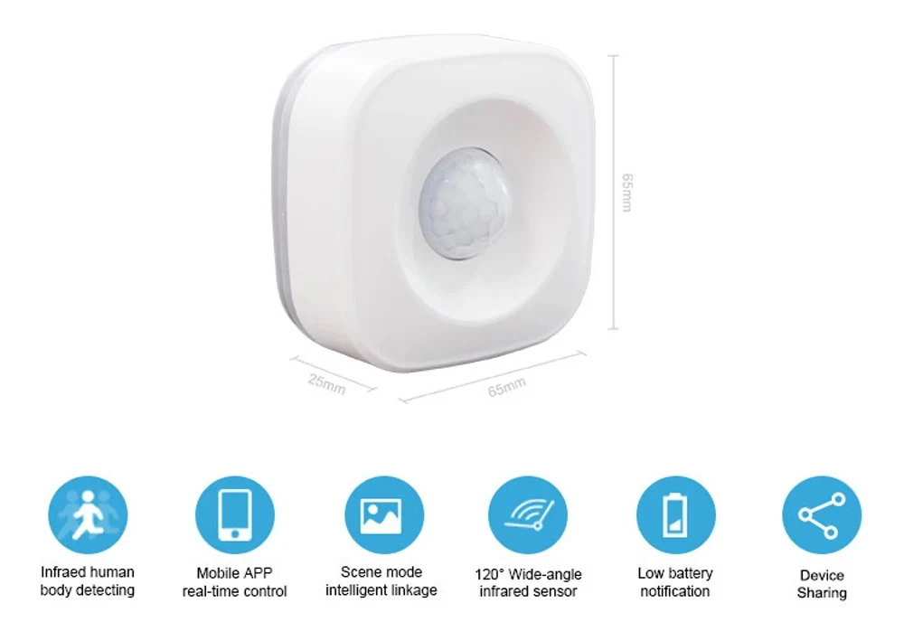 This is a smart motion sensor which can work dependently without hub , can accurately detect moveing in the room , and can be compatible with Alexa and google home assistant to push and start the voice assistant to protect the house security . Besides, it can IFTTT other smart items . Also, it can associate 2 device sot work to creat your own scene and shart your devices to others directly