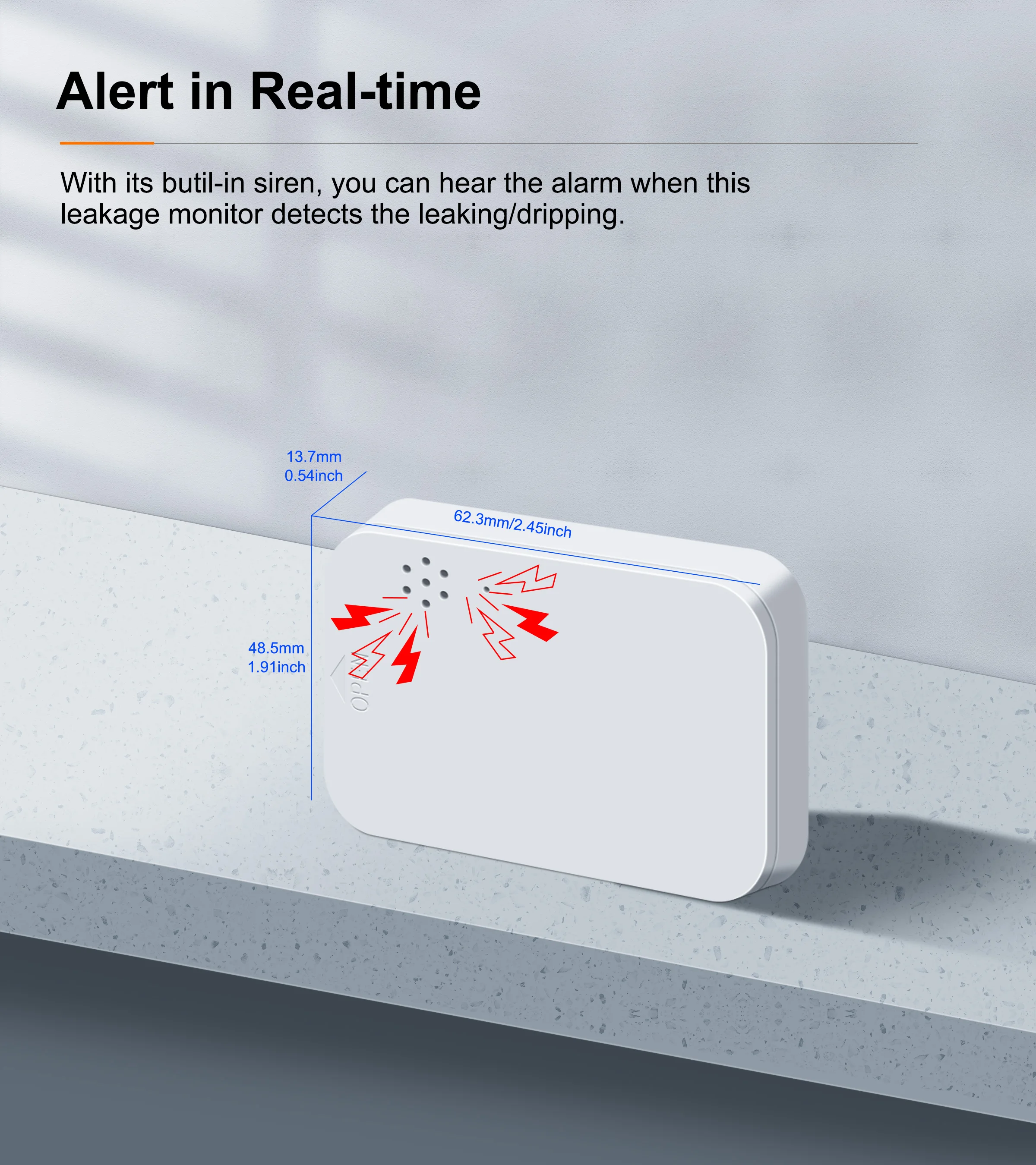 With its butil-in siren, you can hear the alarm when this leakage monitor detects the leaking/dripping.