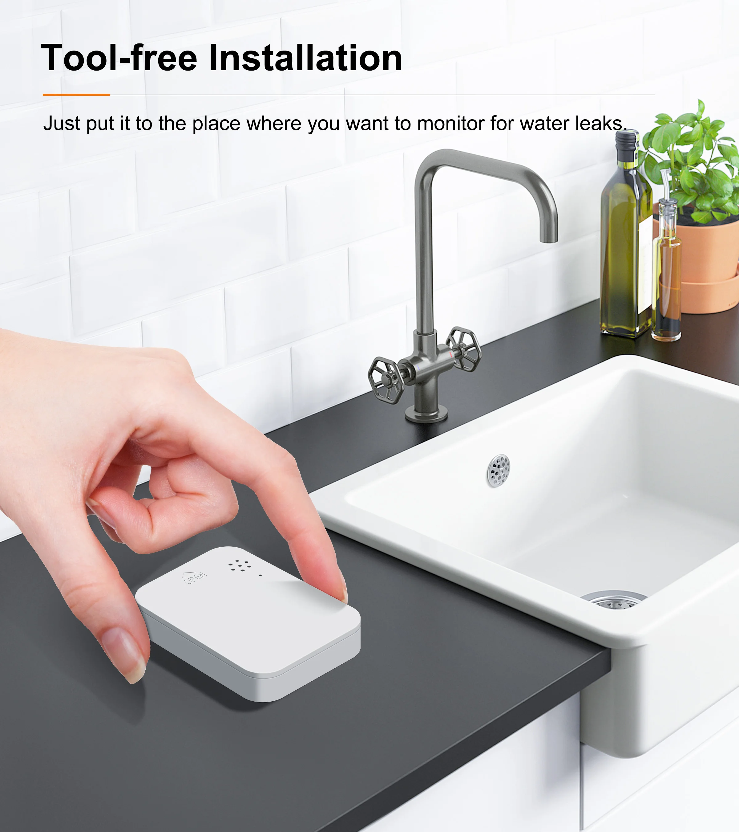 You don't need any complicated wiring or tools. Just put it to the place where you want to monitor for water leaks.